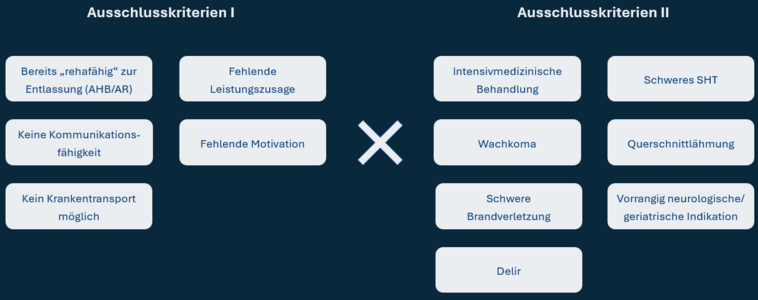 Die untersuchte Population umfasst erwachsene Patientinnen und Patienten (Mindestalter 18 Jahre) nach schweren oder schwersten Verletzungen sowie nach Mehrfachverletzungen (Polytrauma). Die Teilnehmenden sind entweder ausschließlich über die gesetzliche Krankenversicherung (GKV) oder sowohl über die gesetzliche Krankenversicherung als auch die Deutsche Rentenversicherung (DRV) versichert. Voraussetzung für die Studienteilnahme ist, dass die Krankenkasse des/der Patient*in an dem Evaluationsprojekt teilnimmt und dass die vorausgegangene stationäre Behandlung in einem der kooperierenden Krankenhäuser, die einem regionalen/ überregionalen Traumanetzwerk angehören, stattfindet.